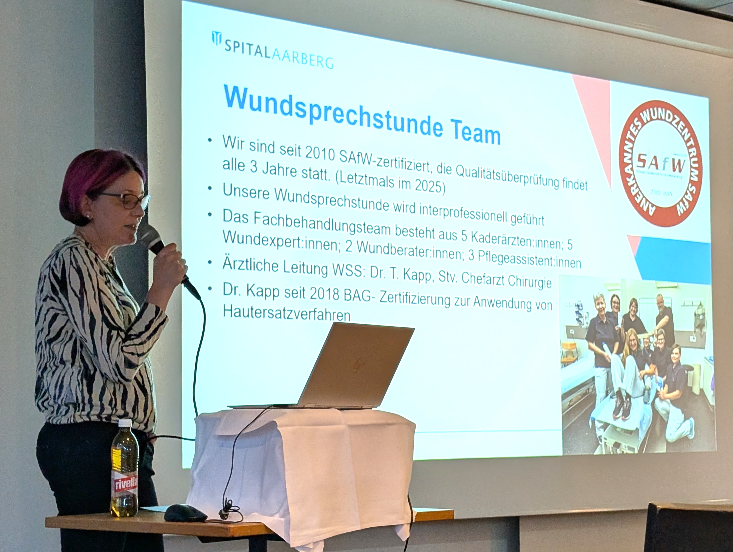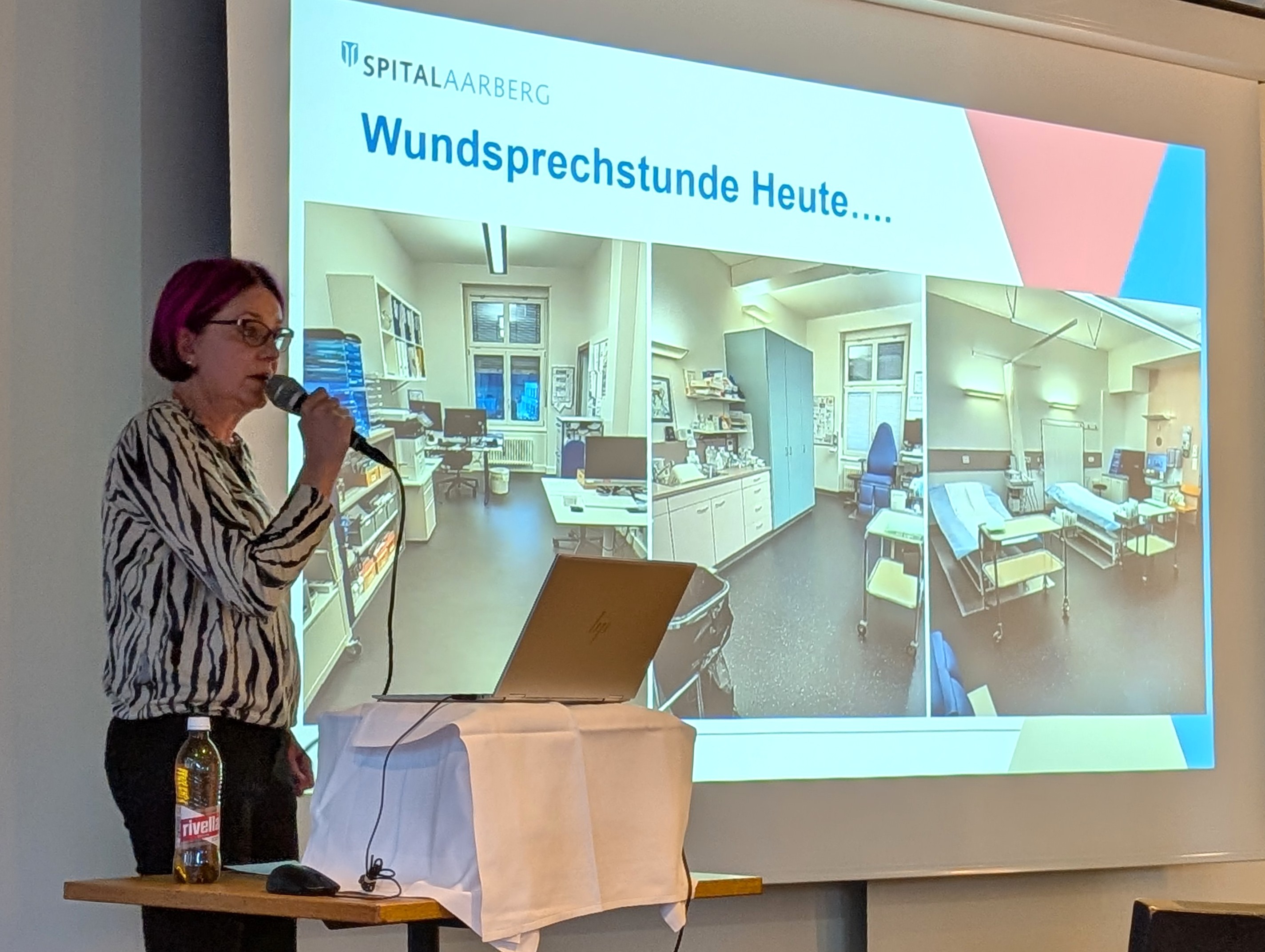 Seit zwei Jahrzehnten ist das Spital Aarberg eine zentrale Anlaufstelle für Patientinnen und Patienten mit komplexen Wundproblematiken in der Region Seeland und darüber hinaus. Wie sehr dieses Thema die Menschen bewegt, zeigte der grosse Andrang beim gestrigen Jubiläumsvortrag. Dr. med. Thomas Kapp, ärztlicher Leiter der Wundsprechstunde, Beatrice Dettwiler, leitende Wundexpertin, und ihr erfahrenes Team von Wundexpert:innen begrüssten das Publikum zu einer Zeitreise durch die Entwicklung der Wundversorgung.